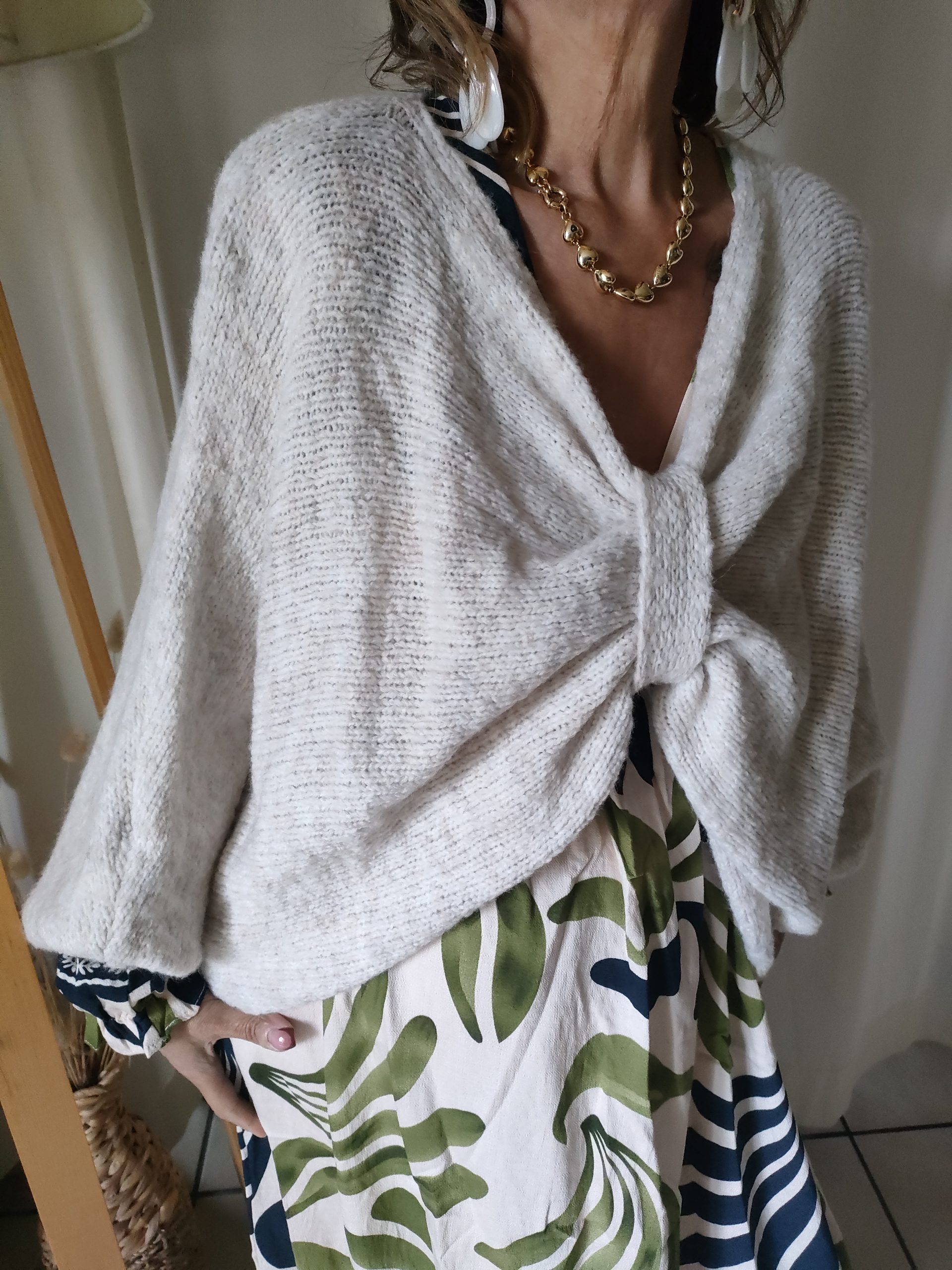 Un indispensable chic et féminin. Ce pull doux séduit par sa coupe fluide et son grand nœud sur le devant, qui apporte une touche raffinée et originale. Parfait pour un style à la fois confortable et sophistiqué, à porter en journée, en soirée ou pendant les fêtes de fin d’année.